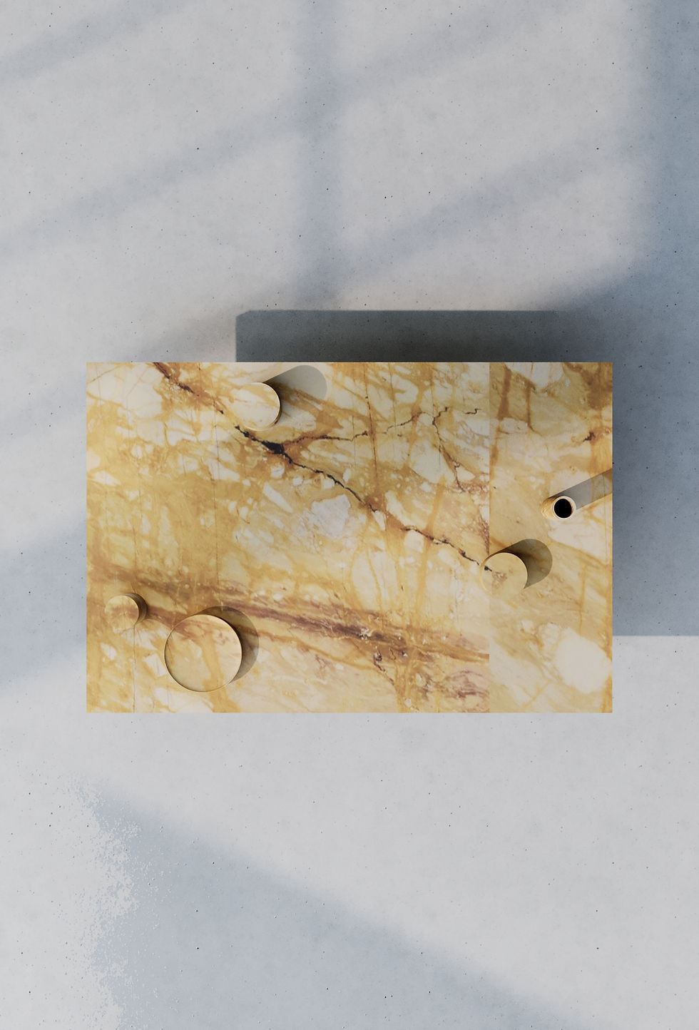 The design introduces a flexible relationship between structure and function, where selected vertical elements extend above the surface to become usable components. Designed by Spinzi for Serafini, these elements can be repositioned, allowing the composition to evolve over time. This modularity transforms Pillar coffee table into an interactive object, where the user participates in defining its final configuration. The internal logic of the structure ensures harmony between all parts, creating a cohesive and balanced composition. Pillar coffee table expresses a contemporary approach to marble design, where adaptability and identity coexist within a refined and controlled system.