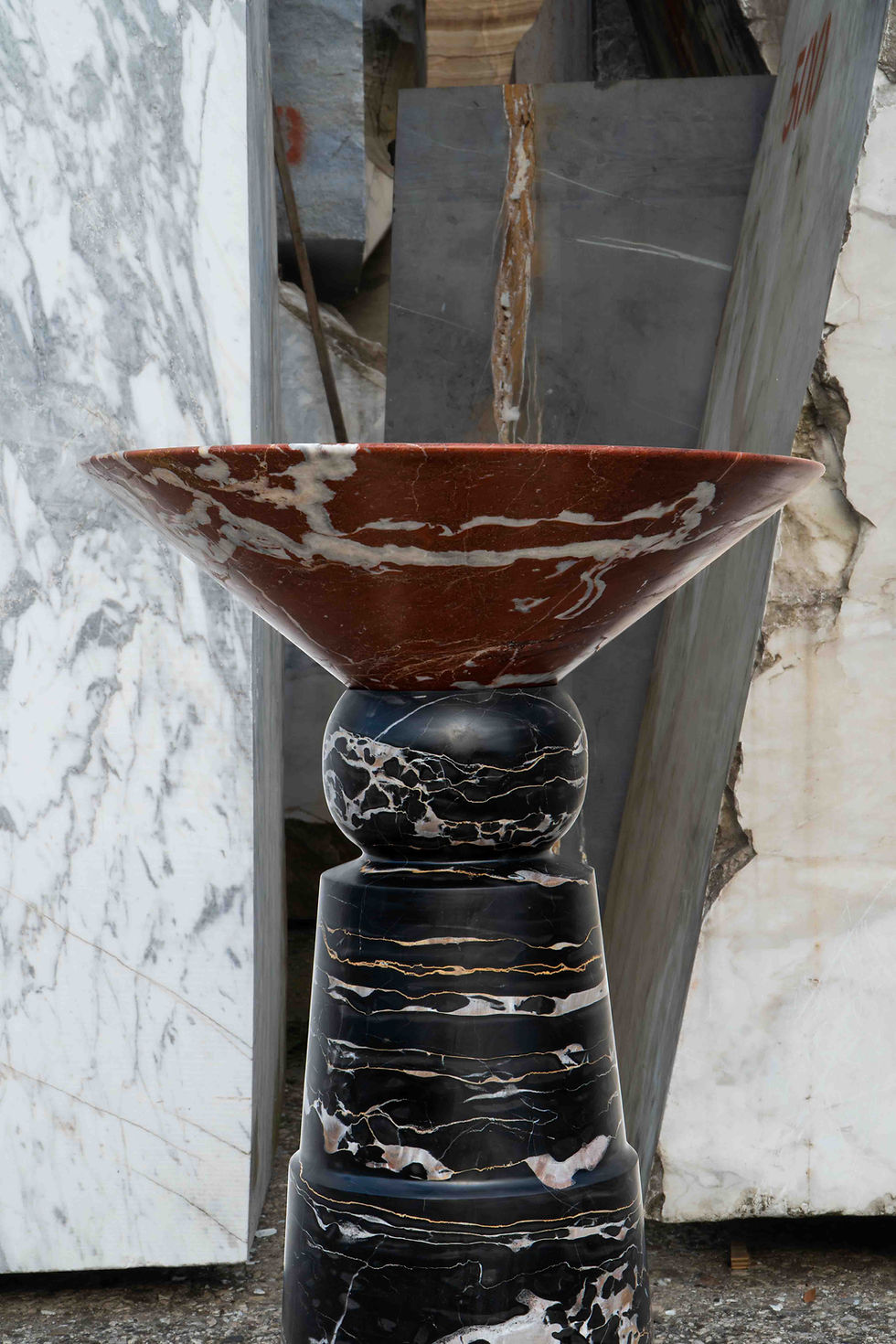 They are made from natural stone blocks: they feature exclusive, unique, and unrepeatable characteristics, such as color veins in different shades, and may differ from reference images, scale models, and sample materials provided. All references are always indicative to facilitate customer understanding.